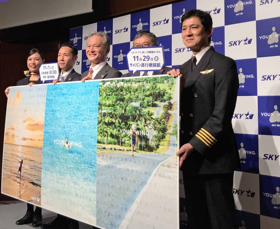 成田 サイパンの直行便復活 スカイマーク チャーター便就航式典 定期便を 前向きに考えたい と佐山会長 トラベル Watch