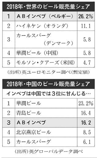 日経ビジュアルデータ בטוויטר ビール 系飲料で首位のアンハイザー ブッシュ インベブ ベルギー はsabミラー 英国 買収も奏功しました カールスバーグ デンマーク をかわした3位の華潤 ビール 中国 は高級路線にかじを切っています 日経ビジュアルデータ