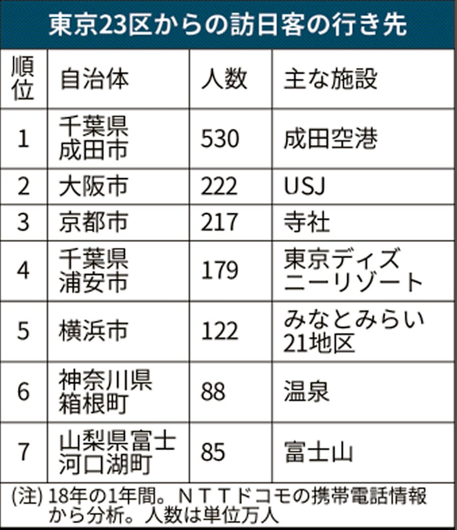 訪日客の往来 東京23区は千葉 成田市や大阪市が多く 日本経済新聞