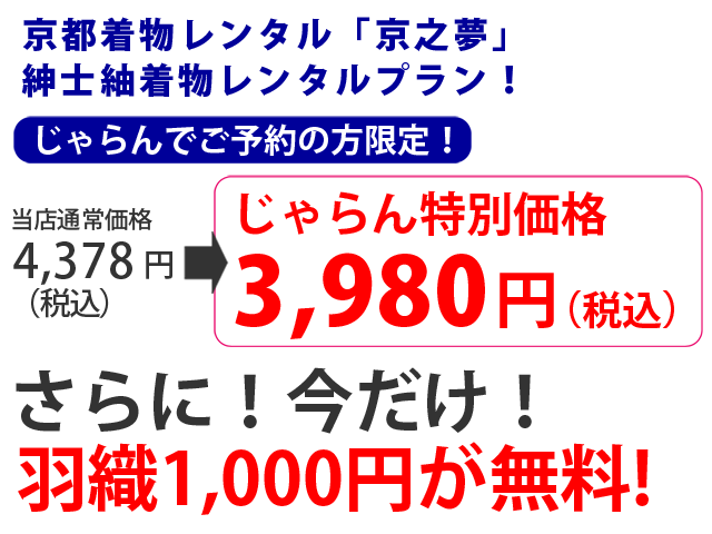 メンズ 無地紬 着物レンタル 通常4 378円 じゃらん特別価格3 980円 さらに今なら羽織1 000円が無料 京都 らしい粋な姿で散策 カップルにもオススメ 京都着物レンタル 京之夢 じゃらん遊び体験
